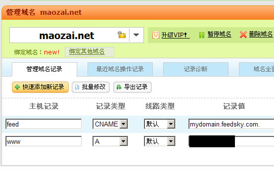 Dnspod的域名解析還是比較容易的,大家可以自己摸索著設(shè)置。至此,整個過程設(shè)置完畢,以后如果需要域名解析記錄,只需要登陸 dnspod修改即可,不在需要登陸godaddy,甚是快捷、方便吧!