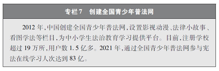 法律的權威源自人民內心擁護和真誠信仰。中國圍繞青少年、互聯網企業從業人員等重要普法對象開展法治宣傳,引導青少年網民依法上網、文明上網、安全上網,督促互聯網企業合規合法經營,提升法律風險防范意識。