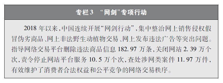 規范網絡交易活動。讓網絡交易活動在規范中運行,是營造良好網絡市場環境、維護廣大網絡交易主體權益的必然要求。開展“網劍行動”,集中治理網上銷售侵權假冒偽劣商品違法行為,重拳打擊網上非法交易野生動植物及其制品活動。嚴格落實網絡平臺責任,強化互聯網廣告監管。針對“直播帶貨”、微店營銷等新型網絡交易形式,嚴管網絡招徠渠道,查處多家涉嫌違法網站和平臺用戶。針對網絡傳銷行為開展專項行動,對網絡購物型傳銷、網絡投資理財型傳銷、網絡創業型傳銷,實施重點打擊查處。通過一系列執法,重點領域、重點主體、重點形式的網絡交易活動得到有效規范。